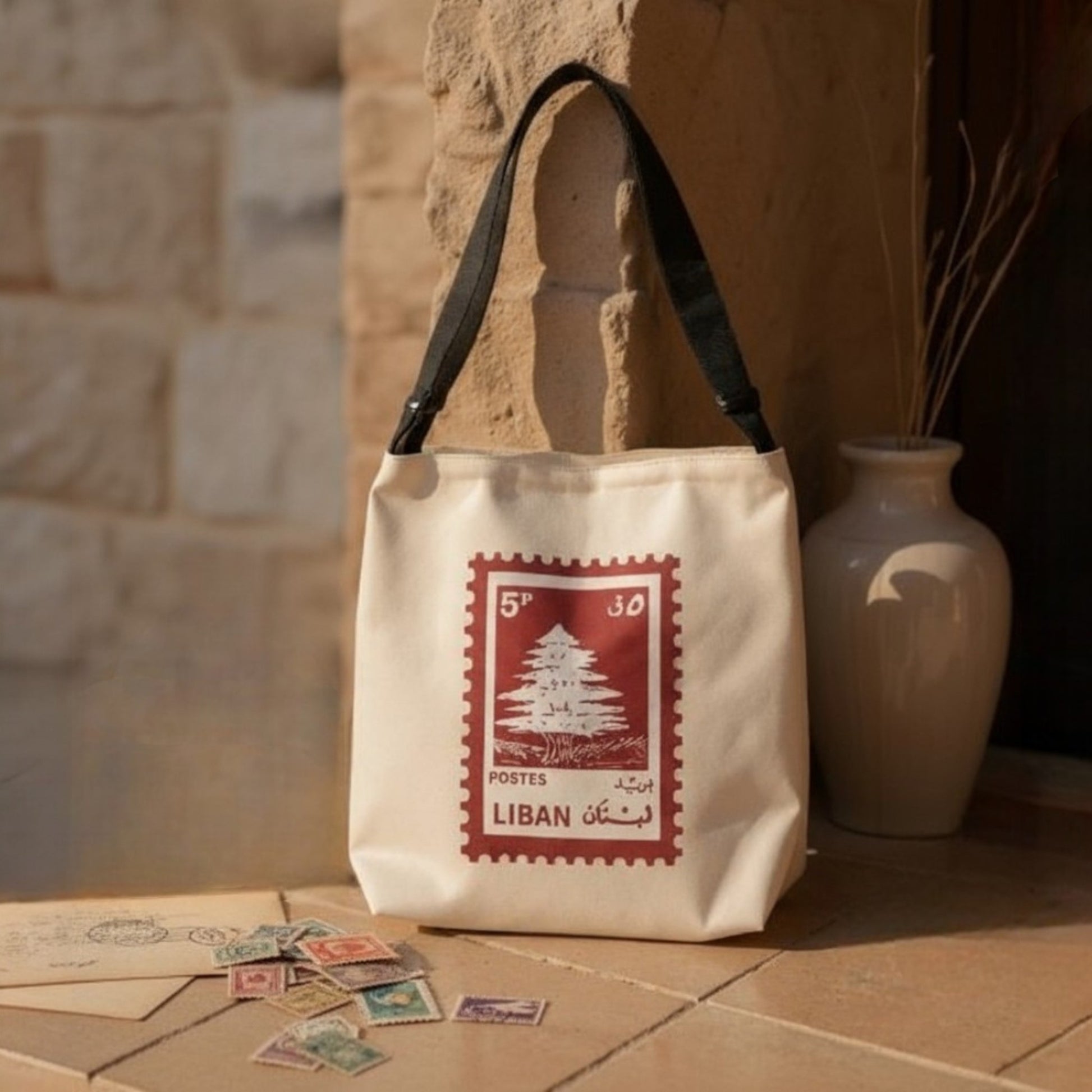 With its distinctive design featuring a vintage Lebanese postage stamp, this crossbody tote is a nostalgic tribute to Lebanon’s heritage - highlighting the iconic cedar tree and classic postal typography. Whether you're commuting or exploring, this piece carries both style and story.
