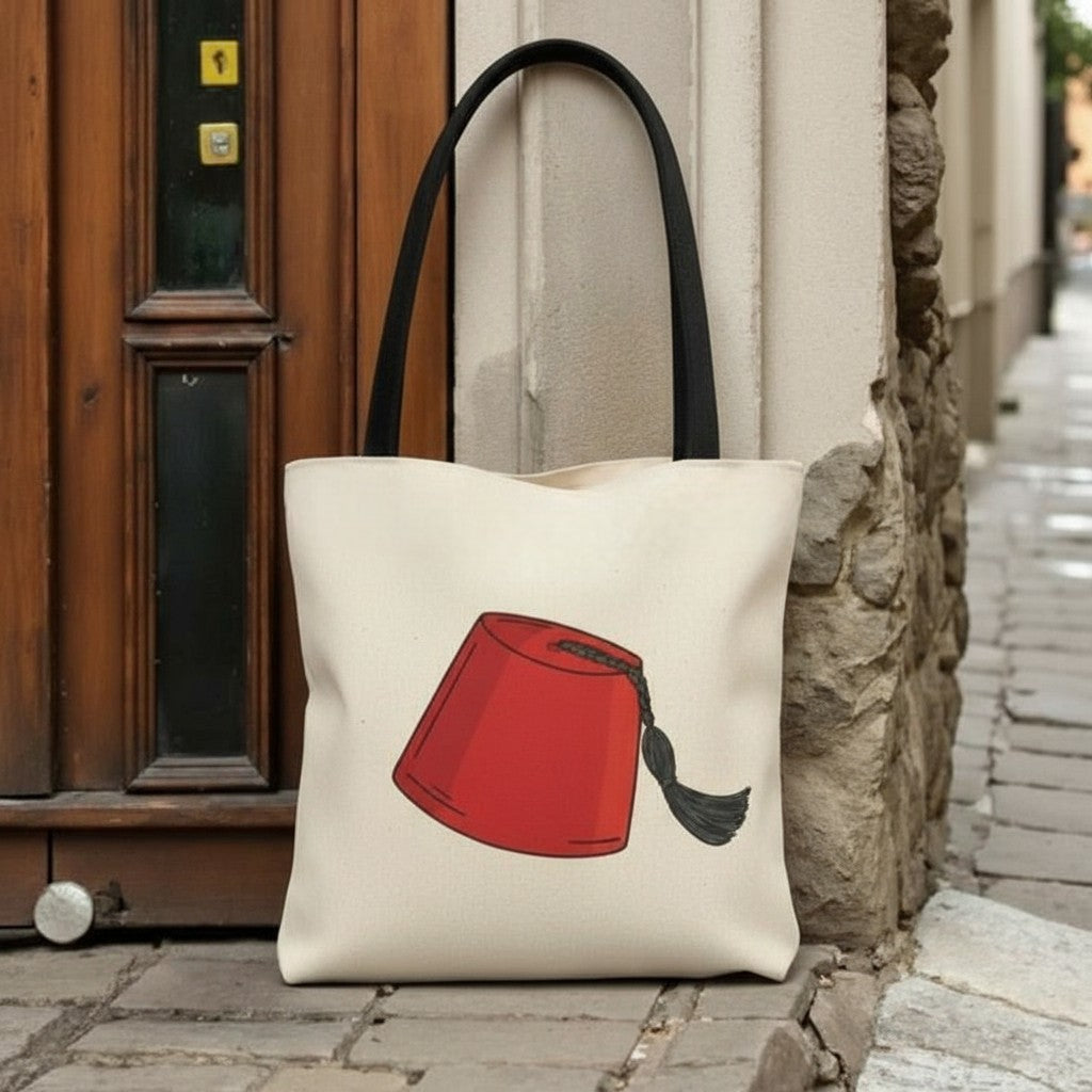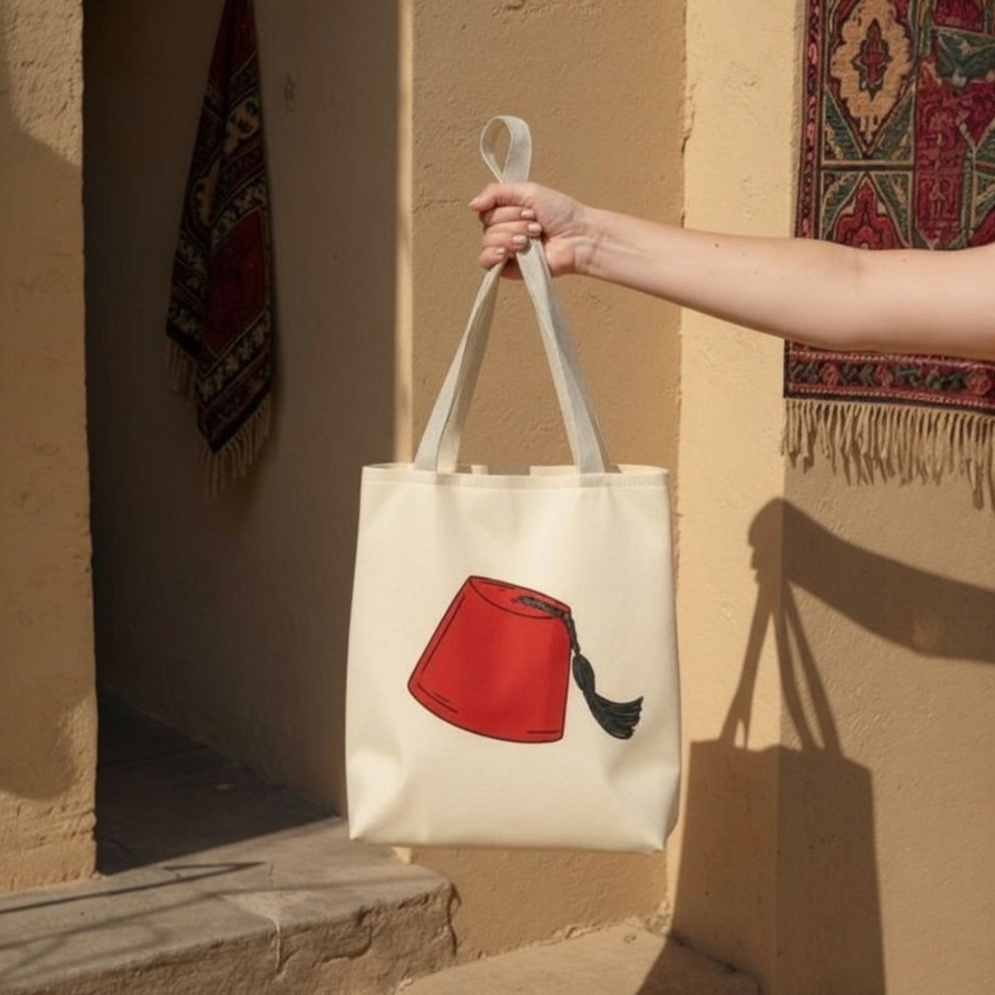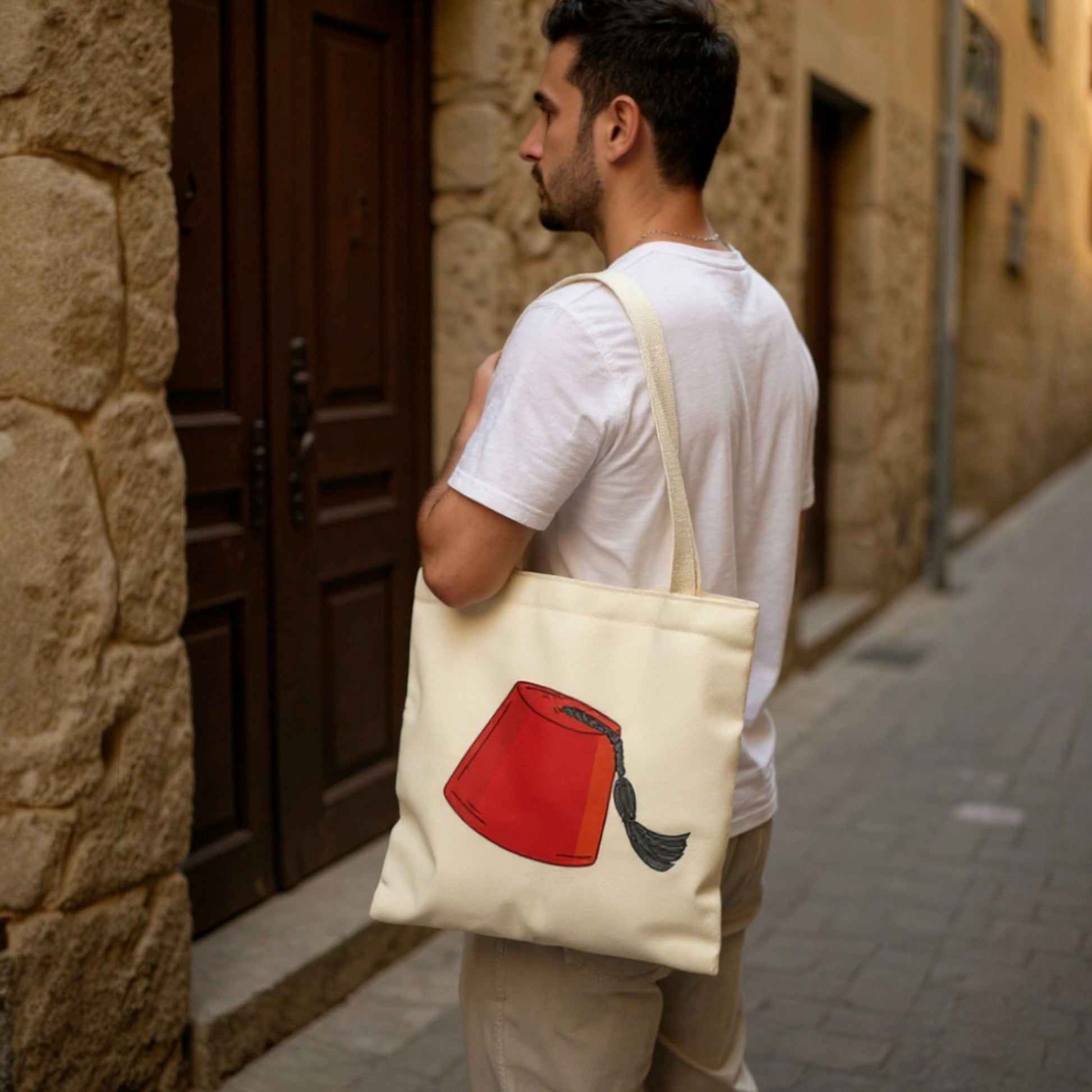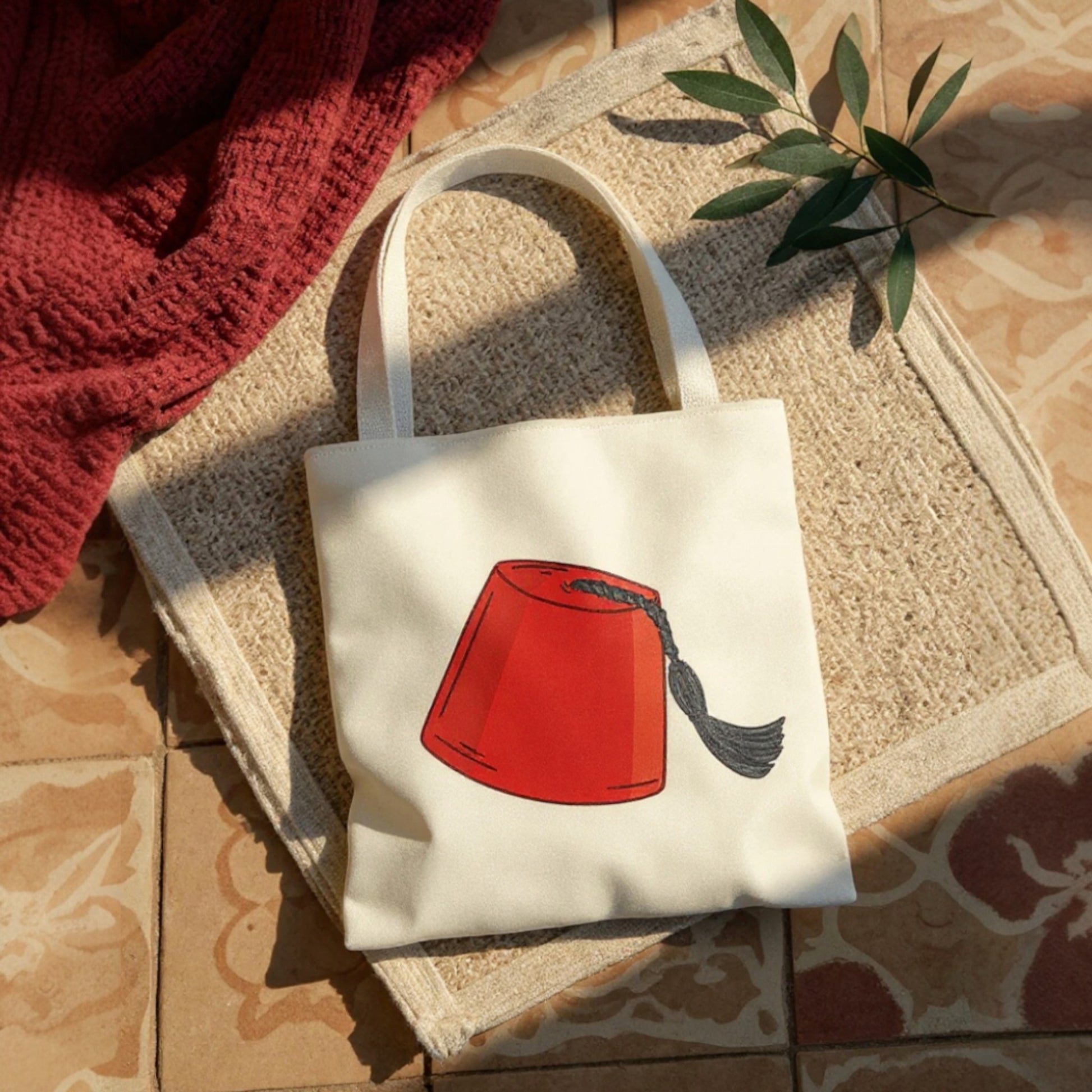 With its bold illustration of a classic red tarboush, this printed tote celebrates a timeless symbol of Levantine and Ottoman heritage. Once worn with pride across cities like Beirut, Damascus, and Cairo, the tarboush evokes a sense of nostalgia and identity that continues to resonate today.